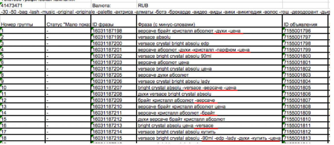 Поэтому очень важно:- Тщательно отминусовать все ключи, которые нам не подходят/не целевые/не отражают сути нашего УТП и т. д.